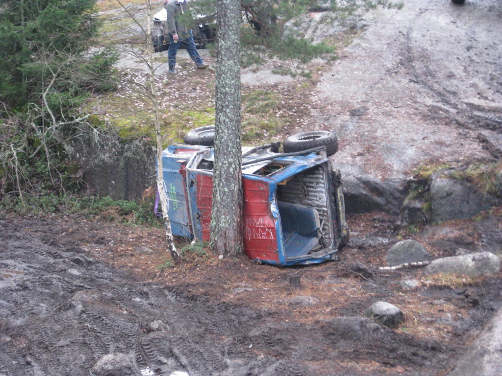 Saapuessaan tallille auto näytti tältä::confused: http://forums.offipalsta.com/picture...ictureid=91976 http://forums.offipalsta.com/picture...ictureid=91977 http://forums.offipalsta.com/picture...ictureid=91978 Sitten sitä lähdettiin koe-ajamaan kuuluisille Raision kallioille. Ja tulos oli tämä::eek::eek::eek::eek::eek::eek::eek: http://forums.offipalsta.com/picture...ictureid=91979 http://forums.offipalsta.com/picture...ictureid=91980 Onnettomudesta selvittiin pienillä naarmuilla autossa, takakatto kasaan, tuulilasi rikki ja miehistö kokemusta rikkaampana. Oli pojalle (8v.) ensikokemus kaadosta. Sittemmin on läästitty (vaarin ja pojan toimesta) tutun sävyistä maalia pintaan.:cool: http://forums.offipalsta.com/picture...ictureid=91981 http://forums.offipalsta.com/picture...ictureid=91982 Kasettisoittimen kytkentöjä paranneltu, katkennut iskari vaihdettu (kiitokset Reimalle), la puhelin asennettu ja ikkunat pesty. Viikon päästä yritetään lähteä ekalle safarille. |