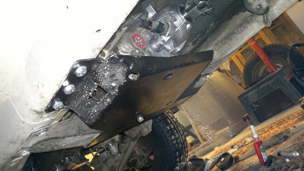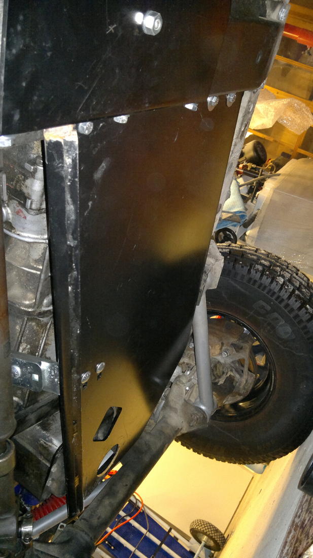 Liite 23213 Tuossa etuosassa on vielä pokkaus josta se on pultattu kolmella pultilla tuohon palkkiin. Vaihdelaatikon ja moottorin alla onkin sitten tällanen panssari: Liite 23214Liite 23215 Saa jo aika huoleti pukata paikkaan kuin paikkaan... |