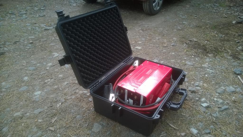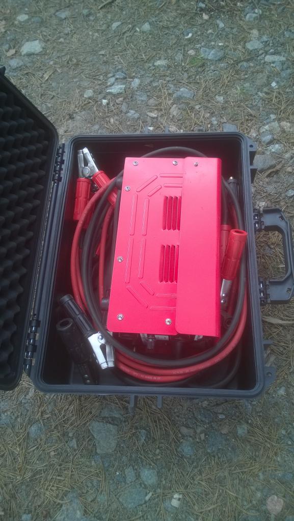 Paino kuvan rojuilla 11,5kg, ei sisällä juomia :) Koneisto Mpartyn tekemä, itse kutistettu. http://forums.offipalsta.com/picture...ctureid=187840 http://forums.offipalsta.com/picture...ctureid=187839 "yksinkertaistuksen" nimissä akusta hitsattavaan kohteeseen menevä pluskaapeli ei kierrä laitteen kautta. Virta koneistolle otetaan hitsattavasta kohteesta pistoolin vieressä olevalla hauenleualla. Musta kaapeli kytketään koneesta akun miinukseen, lyhyt punainen akkujen välille ja pitkä punainen toisen akun plussasta kohteeseen. Ulottuvuus akuilta n.5m. Masiina on pultattu kiinni salkkuun. http://forums.offipalsta.com/picture...ctureid=187838 http://forums.offipalsta.com/picture...ctureid=187837 Sitäkin laskeskeltiin notta oisko toiminu 16 mm2 kaapeleilla mutta siinä taisi jo häviöt kasvaa sen verran että tehtiin 25mm2 kaapelista. Edit: Tuo Wurthin Nahkis hitsausmaski vaikuttaa todella hyvältä, istuu ja on mukavampi omassa päässä kuin euromaski :) |