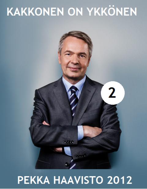 Sillä ei oo paskankaan väliä. Kunhan se ajaa samaa asiaa kun sinä! Ugh,olen puhunut ja ei tarvitse kommentoida ainakaan Väyrysen ja Ninistön kannattajat. Samaten jos Haavistosta tulee pressa niin menetetään kaikki suhteet moneen valtioon Pekan erikoistaipumuksien suhteen. ps...valitettavasti Haavisto tuli mulle kakkosena,kakkonen ei oo ny ykkönen! |