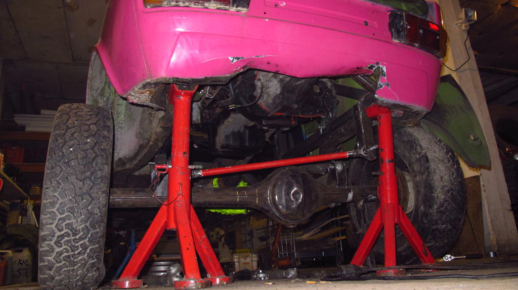 Katsotaan mitä syntyy kun otetaan fiiatti,putkinippu,rangerover akselit,niva jakolaatikko,130hp rover pensakone + laatikko ja läjä sekalaista romua:D