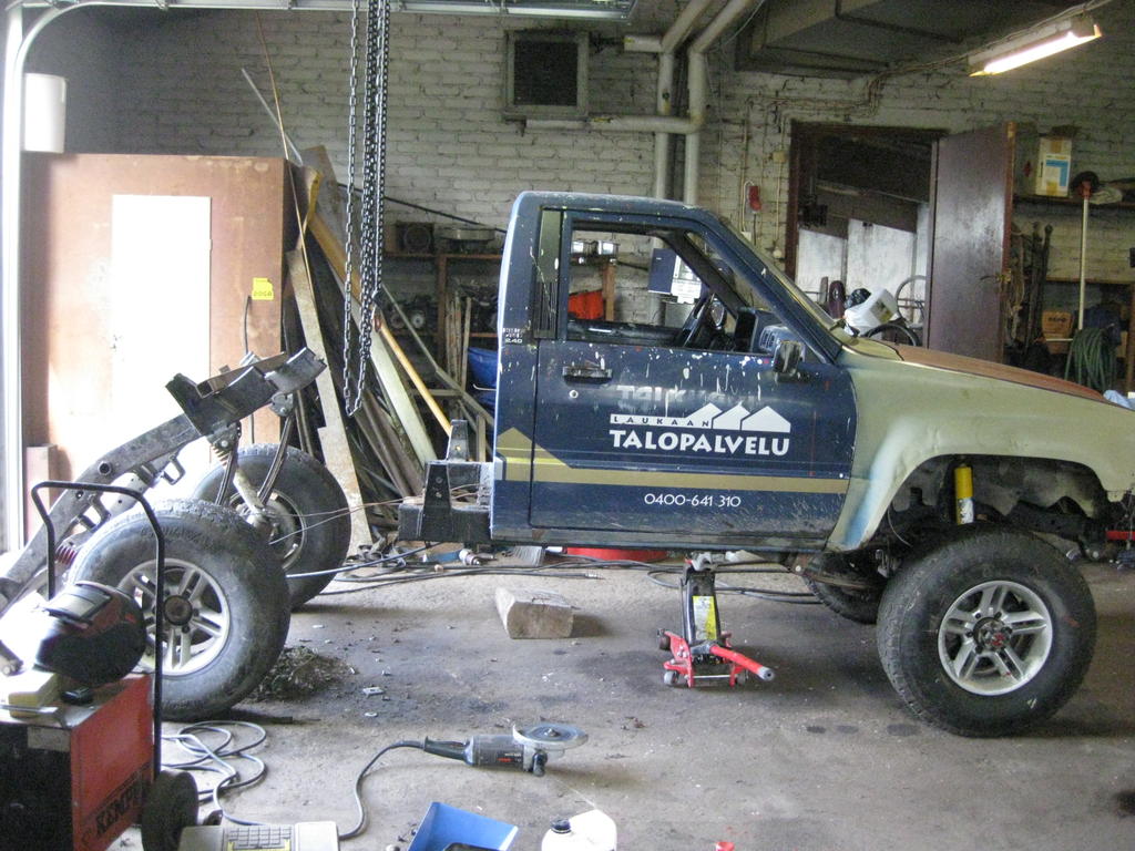 Eilen käytii Slayerin kanssa hakemassa tommonen pieni budjettilaitos yhteiseks projektiks. Tarkotus tehä jonkinnäkönen kottero suunnistuksen modi-luokkaan. Lähtökohta: http://forums.offipalsta.com/picture...ctureid=113472 Takana palalukko ja turbokone... Ja pakollinen joustokuva: http://forums.offipalsta.com/picture...ctureid=113474 On se vaan niin nätti. Alustasta ei mitään haisua mikä on, mut ajatuksena lyhentää akseliväli vastaamaan lyhyt hytti lyhyt lava-yhdistelmää. Numeroina tarkoittaa: 2,845 mm (112.0 in)-> 2,616 mm (103.0 in), samalla muuttaa ainakin alkuun takapää kierteille parempien joustojen saavuttamiseksi ja vaihtaa etuiskarit lyhyemmiksi(nyt pohjaa sisään joustossa). Lava pois: http://forums.offipalsta.com/picture...ctureid=113475 Katki: http://forums.offipalsta.com/picture...ctureid=113477 Ja valmis: http://forums.offipalsta.com/picture...ctureid=113479 http://forums.offipalsta.com/picture...ctureid=113480 To do-lista: flatbed johon pääkaari takatuin mekaaninen vinssi eteen, sähkö taakse syyläri+flekti taakse turvatankki taakse vararengasteline akut taakse 24v järjestelmä kaveriksi vesicooler jakolaatikon välitys 35" pökkylät alusta high-steer jne... Nyt meillä on etuvetonen hilux! :D |