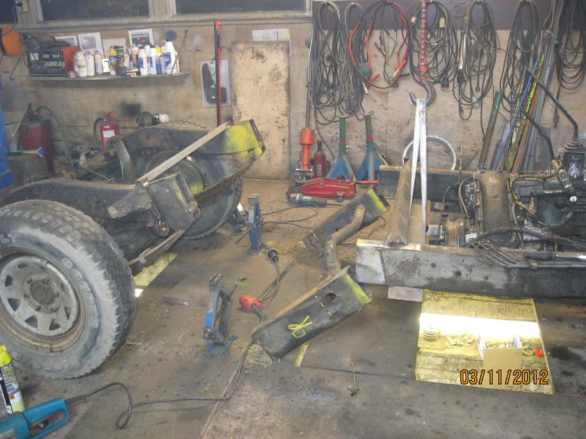 joo takaosa oli kiinni käytännössä katto pellillä. Alustaan on suunniteltu kierre jouset joka nurkkaan ja akseli väliä lyhyemmäks. Toden näköisesti molemmat liikkuu johonkin suuntaan moottori ja laatikko voi olla että muuttaa sijaintiaan rungossa se on viä auki mutta selviää sitten kun saadaan kopan etu osa pois paikaltaan..