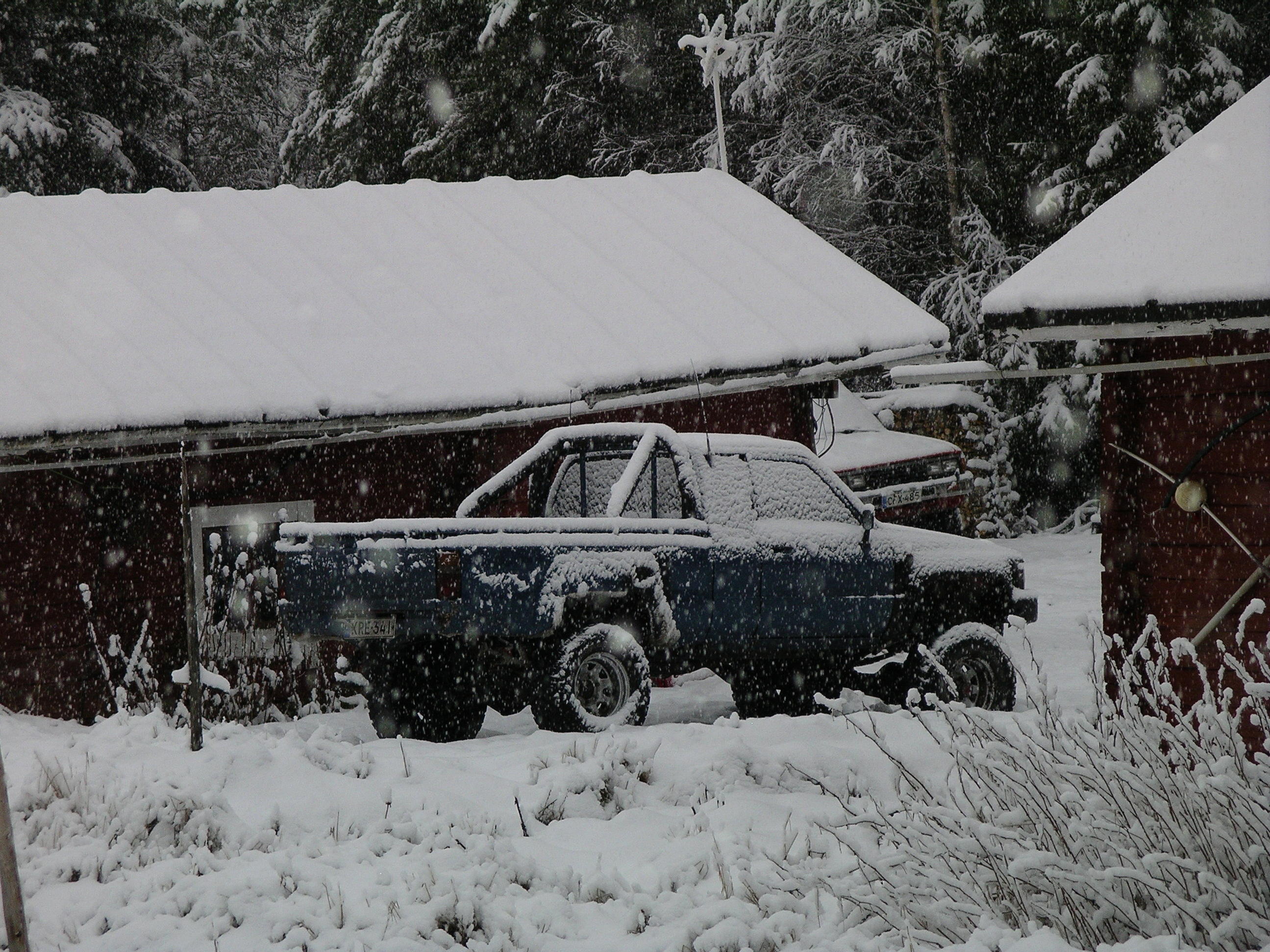 Ja tämä oikeanpuoleinen nykyinen kampe, Vm-84, 2.2 turbo, 3" koria nostettu, HJ61 akselit, 15/38,5-15 pökkyrät, vinssit eteen ja taakse, flatbedi, tuplajakis ja jotain muuta pientä:p Tää paljo parempi ku tuo uuvempi:D |