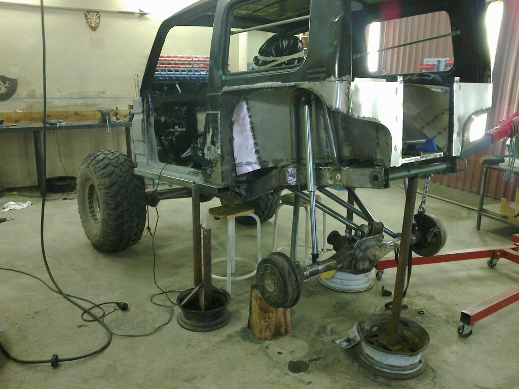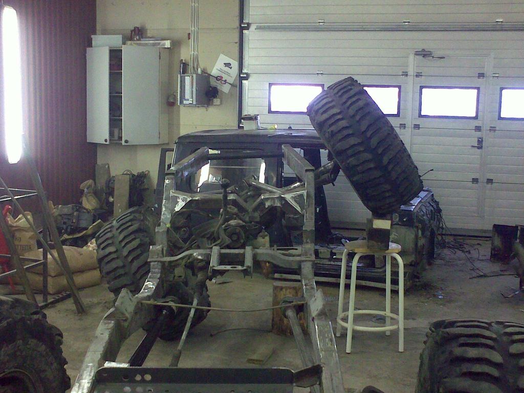 Hiukan yli viikon sillä jaksoin ajella, ennen kuin rakenteluvimma iski. Yllättävän ketterästi tuollainen suikka kääntyy verrattuna HJ-60:seen. masad:n kanssa käytiin sitä mun omalla testiradalla röykyttämässä. ihan kivaa oli:D Tässä huono kuva todisteena, että sillä on oikein ajettu ennen paloittelua:p