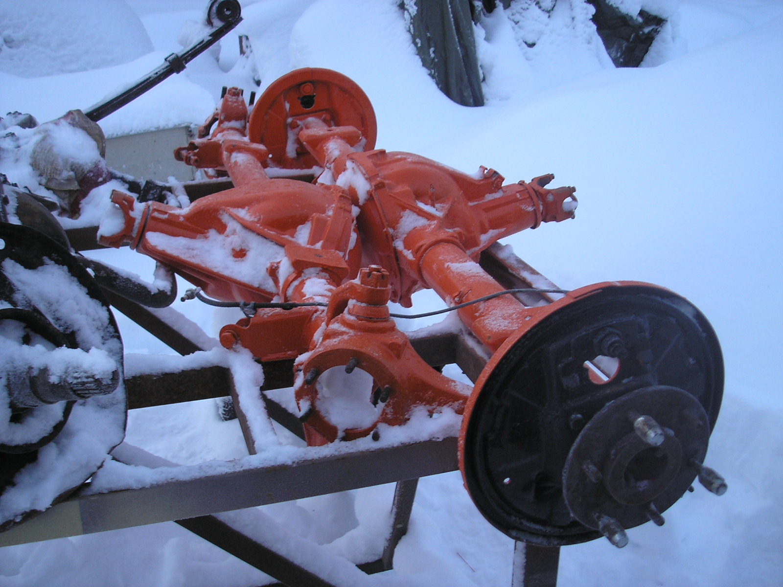 Etu ja taka-akselit 10 pulttiset. Hiekkapuhalletut ja maalattu oranssiksi. 4.56 välitys, kitkalukot. takavälitys, laakerit ja stefat uudet, lukko käytetty, uudet jarrusylinterit, kengät, asennus-sarja ja rummut. jarrujen kasausta vaille.
