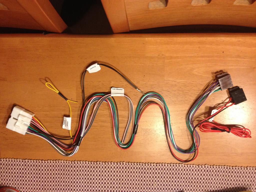 ongelma ratkaistu! tuollainen johto tuli ja pikaisesti testattu että pelaa alkup.subwooferi jää kyllä pois käytöstä mutta tuolla onnistuu soittimen vaihto.Tuo valkoinen iso liitin kytketään kuskin penkin alle vahvistimelle tulevaan liittimeen(alkup.vahvistin jää pois käytöstä) maadoitus ja virrat pitää itse ottaa jostain.