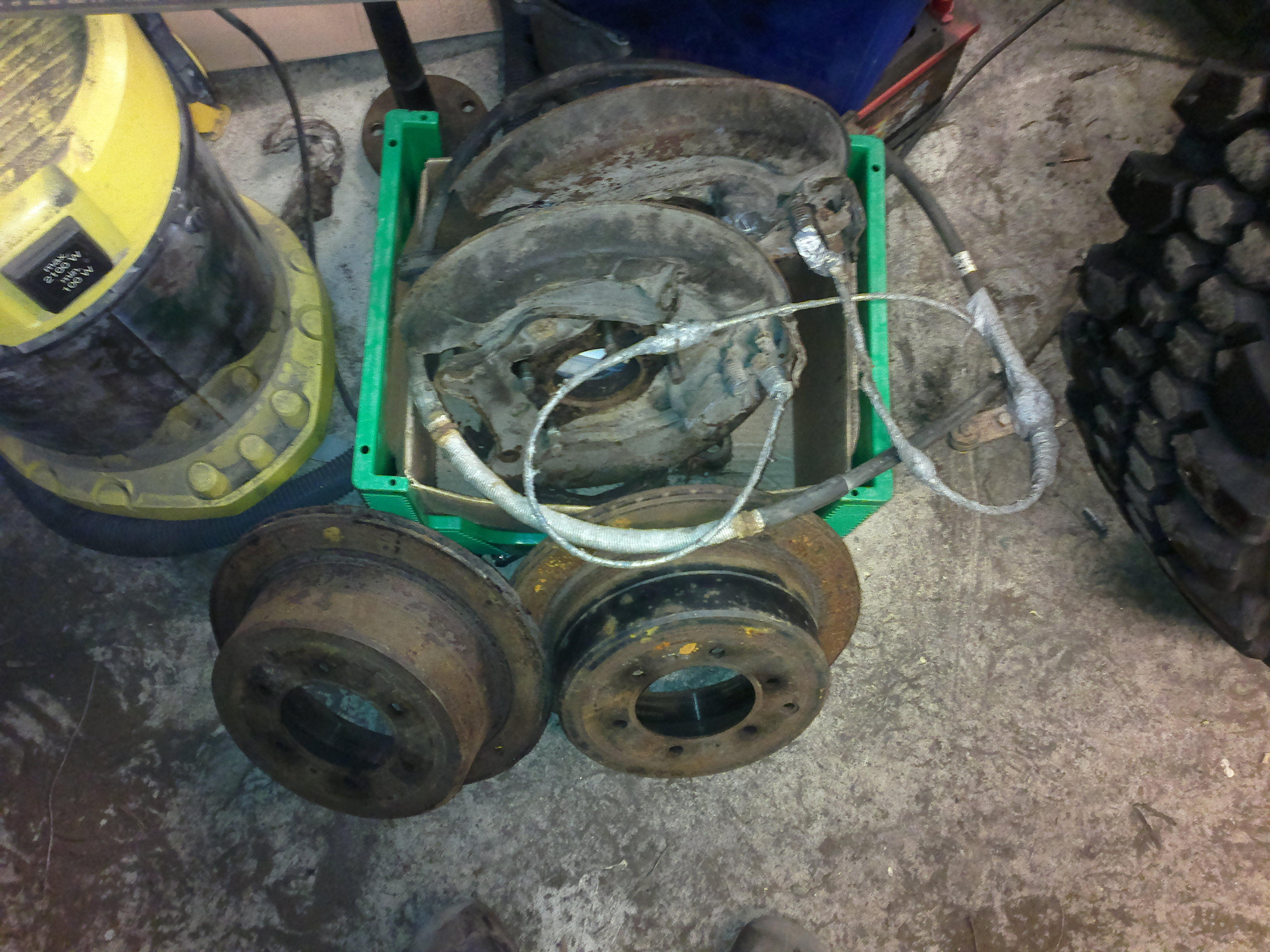 Ensimmäinen uusi pulma tuli vastaan, nuo isommat hodarin levyjarrut ei mahu suunniteltujen 15" vanteiden kans pyörimään eikä tuossa toisessa akselissa ollukkaan jarruja paikoillaan?