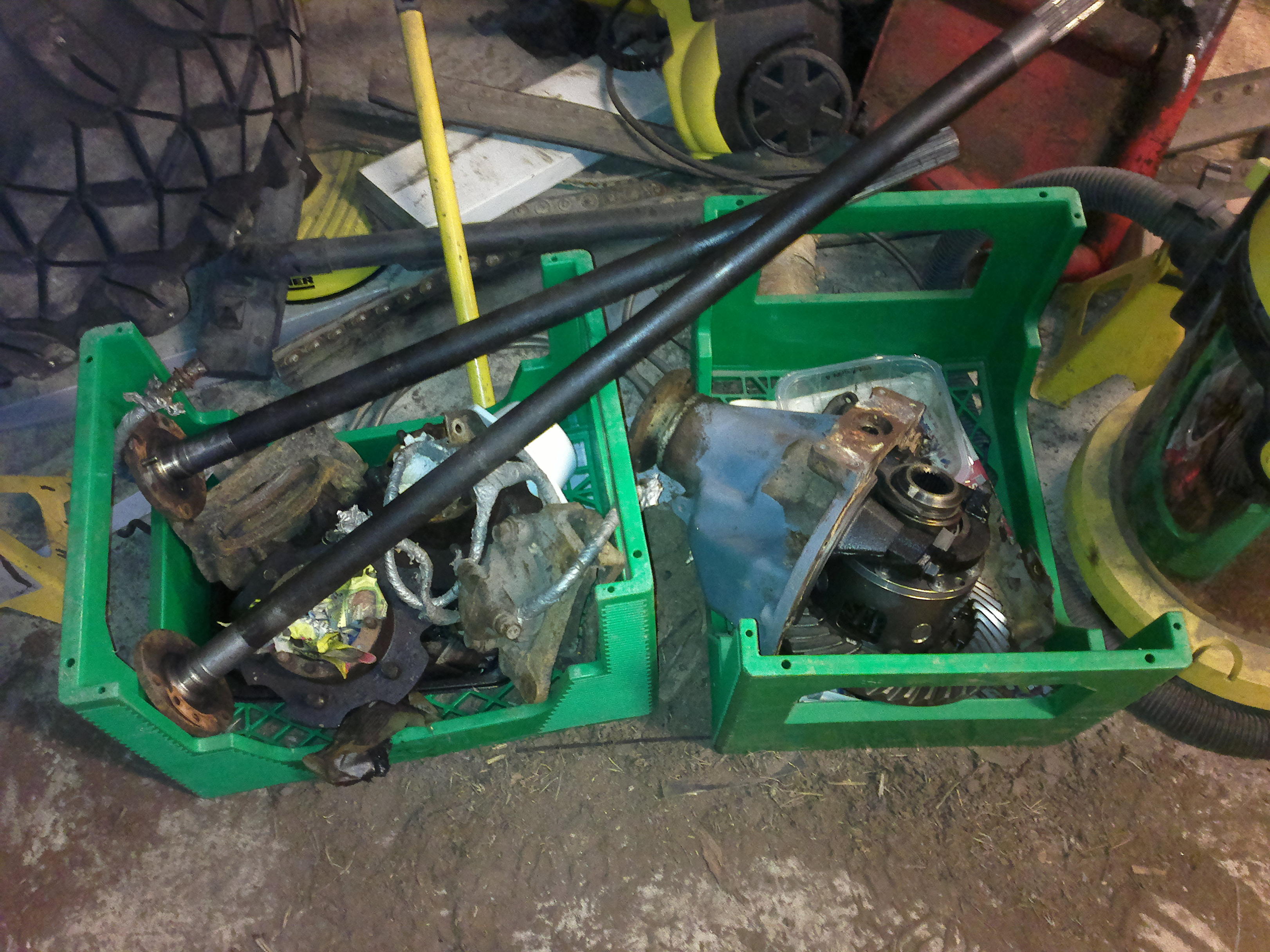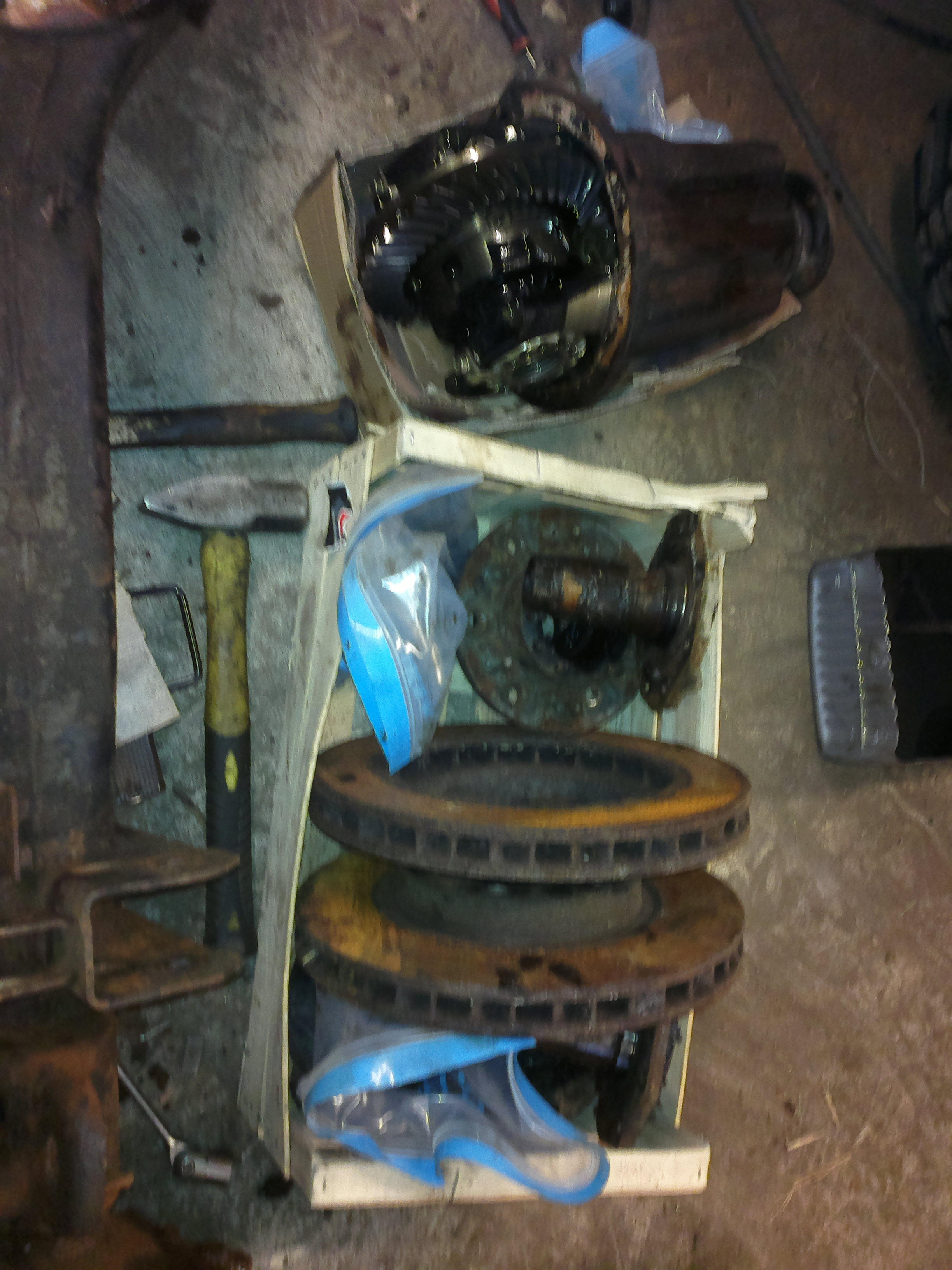 Taka-akseli purkautuu, enää navat irti ja vois ruveta plasmaamaan tojon kiinnikkeet pois ja hitsaamaan perän alapintaan ja alareunaan hieman panssaria. Varaperäkin näyttää hyvältä. Eikä lukossakaan näyttäs olevan mitään kulumaa.