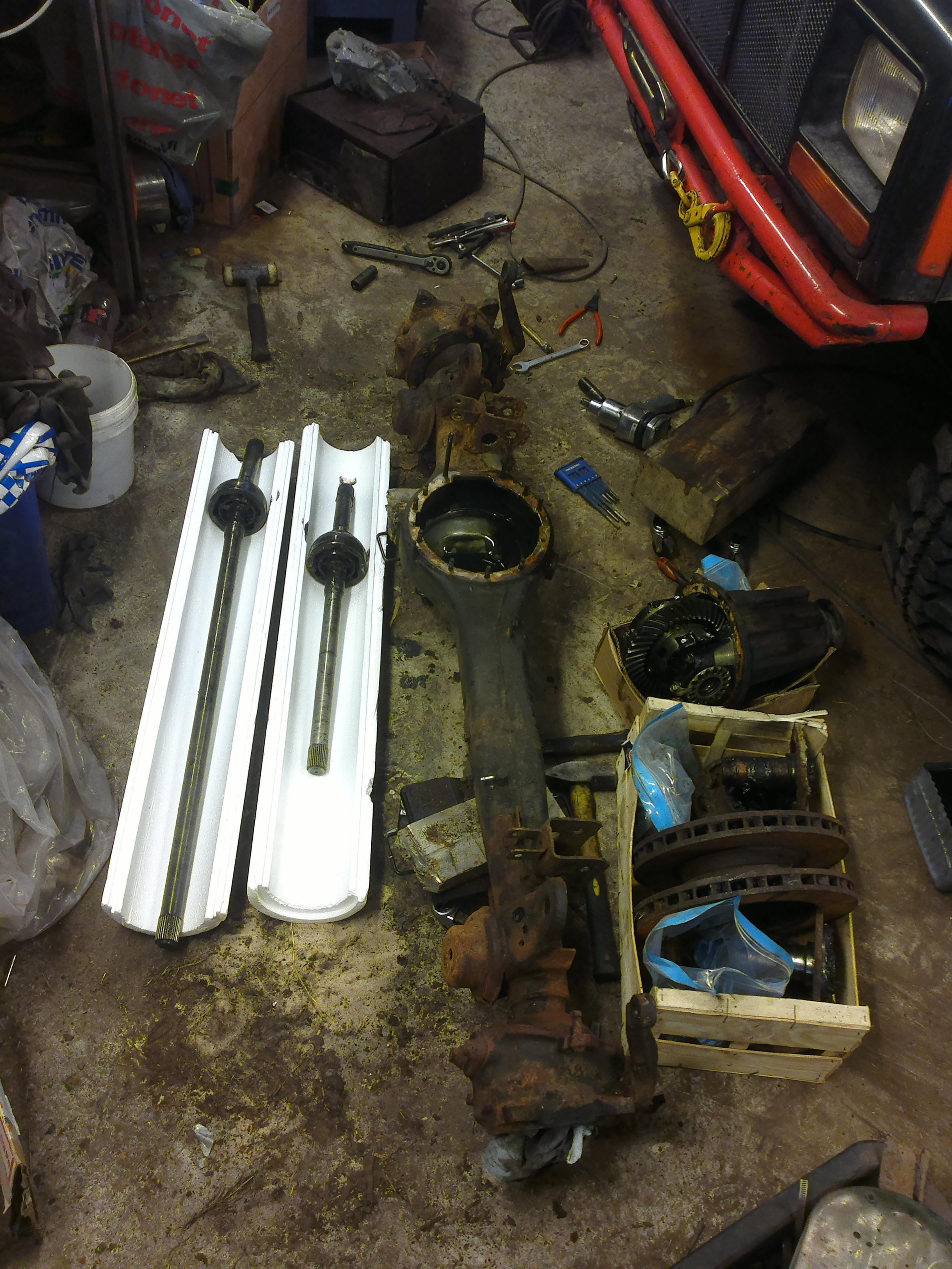 Hitaasti mutta varmasti... Nyt on molemmat akselit purettuna ja arat pinnat suojattuna.