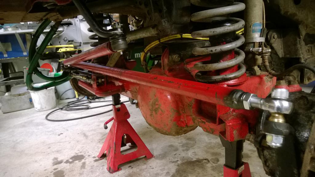 Ainakaan tällaisella joustomäärällä ei vielä ollut ongelmaa pitman armin päässä raidetangonpään liikevaran kanssa. Tuossa aika lähellä tynnyrijoustoa, 4" korotuksella ja pitkillä tukivarsilla 35" renkaat alla: http://www.kolumbus.fi/Timo_Lampi/Je...ettu_pieni.jpg Jos joutuu laittamaan pudottavan pitman armin, niin on myös pakko ostaa/ tehdä sellainen panhardin korinpuolen kiinnike joka tiputtaa panhardin päätä riittävästi alas jotta panhard ja välivarsi on samansuuntaiset. Muuten seuraa aika vittumainen määrä bumpseeriä. No, OTK:ksi ohjaus vaihdettuna niin joutuu panhardin kiinnikkeet joka tapauksessa tekemään uudestaan - ja kannattaa melkein muutenkin, koska tuo orkkis on niin paska :D Lainaus: