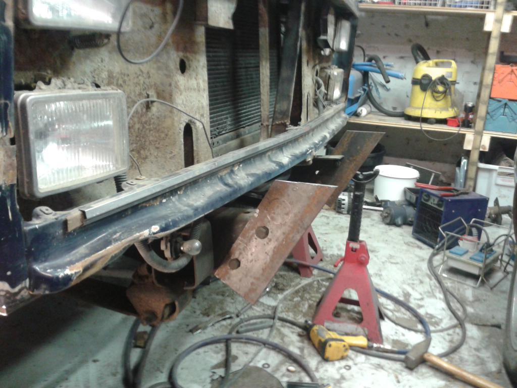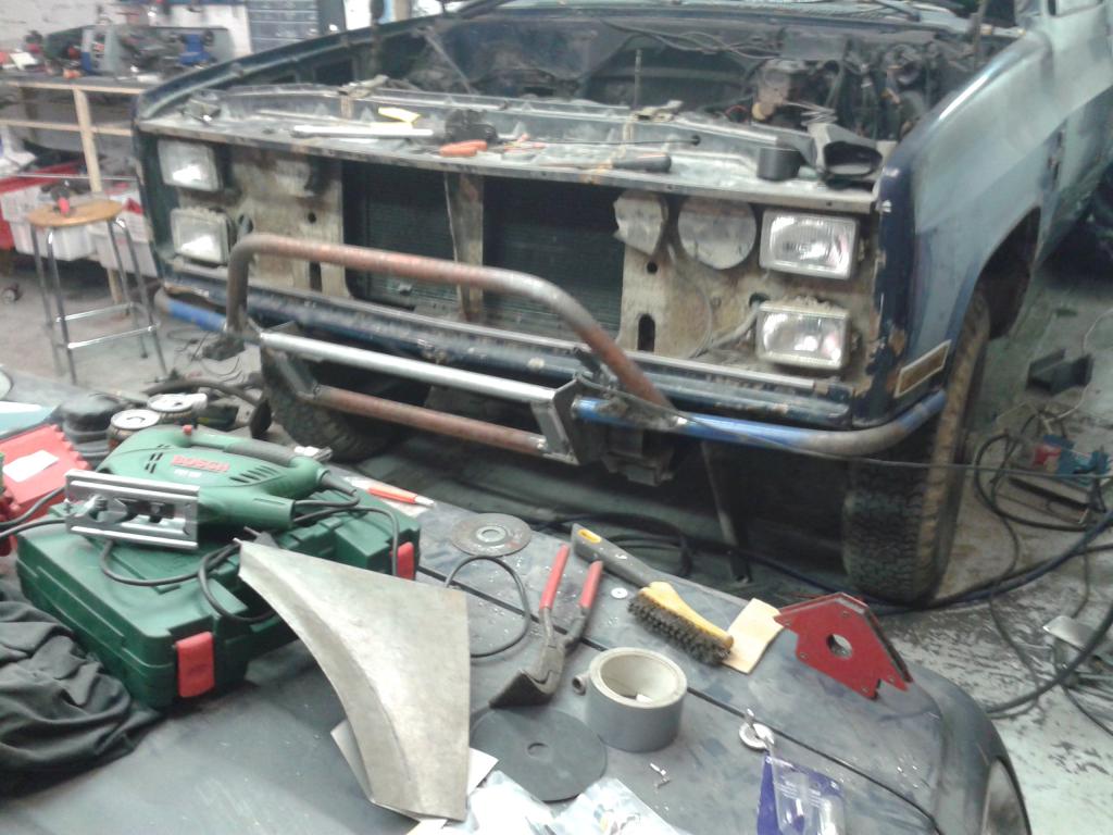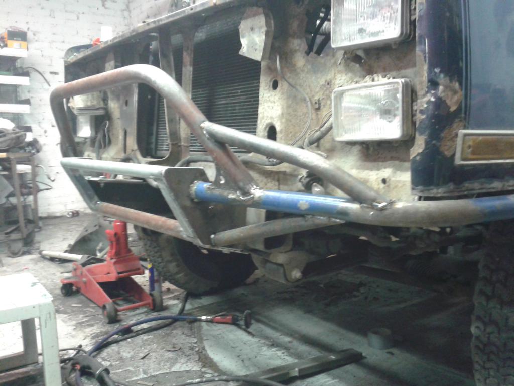 vähän ehti taas askarteleen viikonloppuna, etupuskuri alkaa olla lopullisessa muodossaan. köykämiini-turkkilevyä pitää vielä laittaa tohon runkoaisojen väliin tilapäisesti. vinssin kun saa hankittua niin sit lopullinen levy vasta.