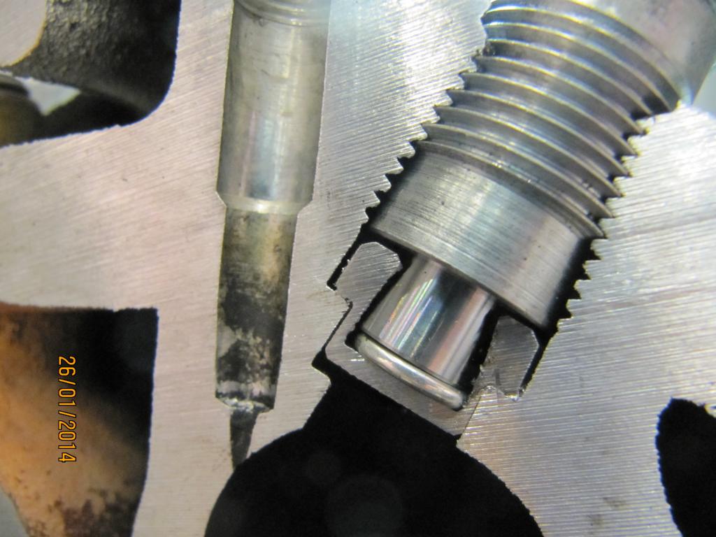 No tuosta ei tainnut itse asiassa löytyä koko halkeamaa, mut vedet valui männän päälle. Pakokanavasta meni toi toinen, nelospytty tais olla. Niin varmaan tuo orkkiskin, oliskohan ollu kakkosen tai kolmosen kohalta.