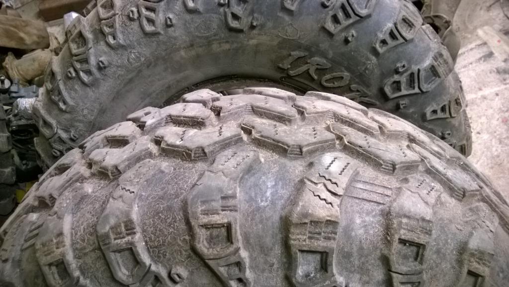Pistetään myyntiin tarpeettomana meikälle eli Super Swamperin 37x14-16 Irokit, pintaa keskellä vähintään se 13mm.