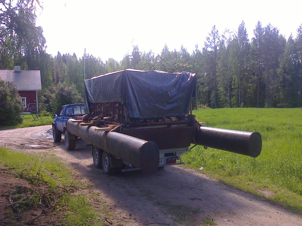 ^- niinno, 5hp peräprutku kärryn takalaitaan kiinni ja pari 200l tynnyriä liinoilla kylkeen ponttooneiksi :D