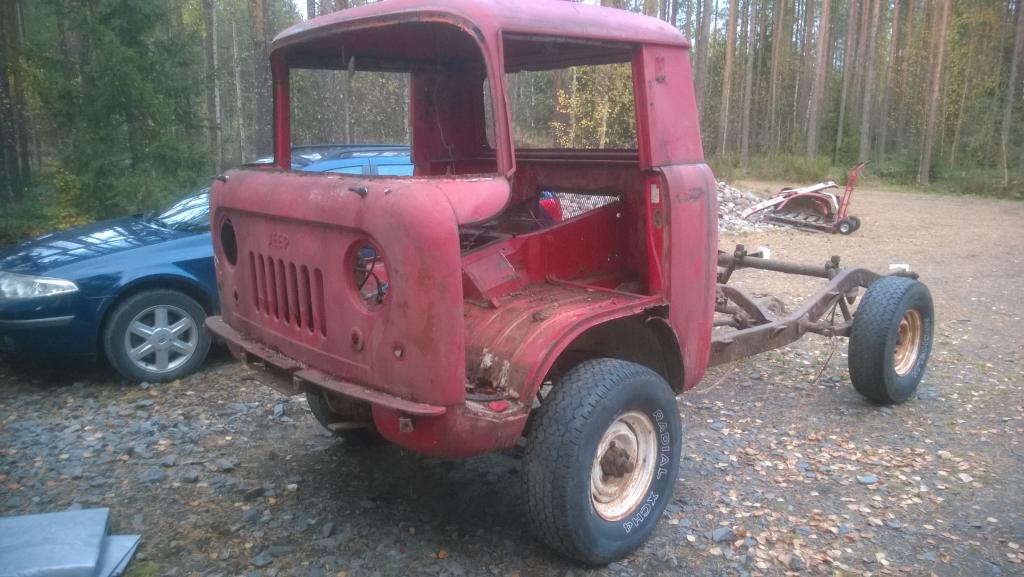 Eihän se mikään mahoton peto maastossa olis mutta omanlaisensa kuitenkin. Pistäs rekisteriin kun korityöt tehty ja nykyinen tekniikka käyty läpi ja sitten joskus kun törmää sopiviin akseleihin ja tekniikkapakettiin päivittäs ne hieman paremmaks... Mutta katotaan nyt kuinka kauan tuon korin, jne. kuntoon laittaminen ottaa aikaa ja mitä sen homman aikana tapahtuu muuta :) Ei ihan heti pääse tuon kimppuun kun on vähän noita talohommia vielä tälle syksylle kesken, hiace pitäs hitsata ja Chedarikin taas huoltaa/kunnostaa ennen kuin tämän siirtäs talliin... |
