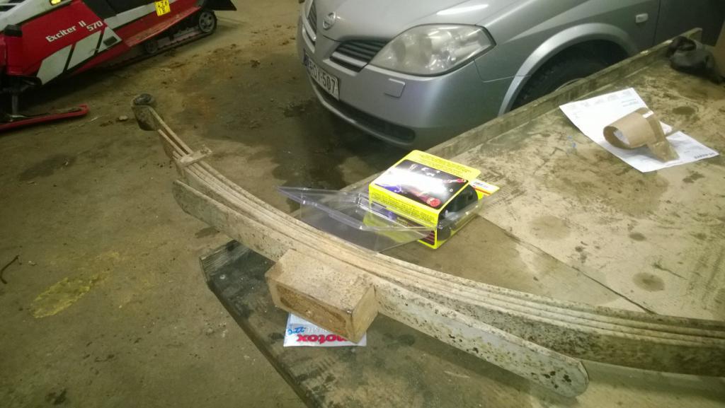 Joulun pyhien pakkohuilin jälkeen oli tarkoitus alkaa takajarrujen herättely ja jousien vaihto 56" pitkiin, samalla siis riippujen kääntö alaspäin. Myös etumurros tarvis vaihtaa kunhan vetarit kotiutuu tullista, etukardaani tarvii myös uuden eturistikon.