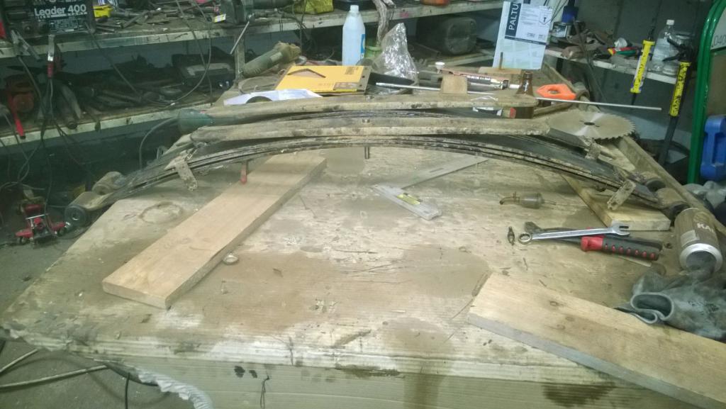 Tänään tuli kiireellä hahmoteltua takaiskarit paikoilleen. Tuleepa ainakin valmista kun joutuu kiireellä aina aamuksi siivoon laitteet pois hallista että jää tilaa oikeille töille :rolleyes: