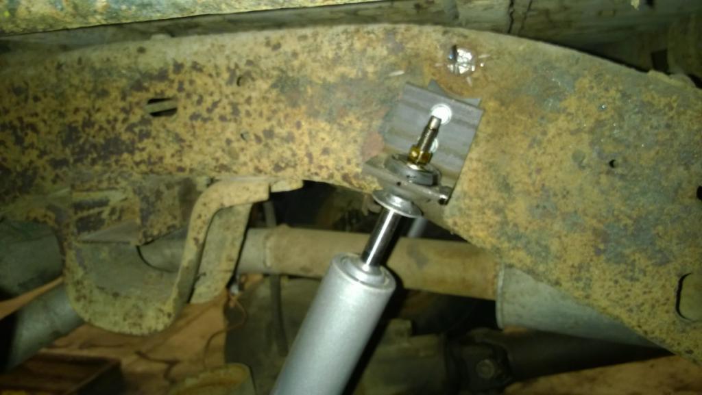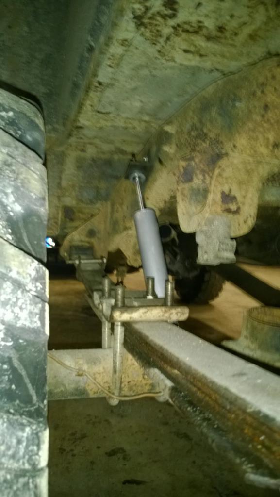 Etuiskarit löysi paikkansa. Iskarit on alunperin -94 Dodge Ramin takaiskarit, ihan mukavasti tuntu olevan liikerataa. Alapään kiinnitys orggis korvaan ja yläpäähän tuollanen pieni korotus pala väliin ettei pohjaa ihan heti.
