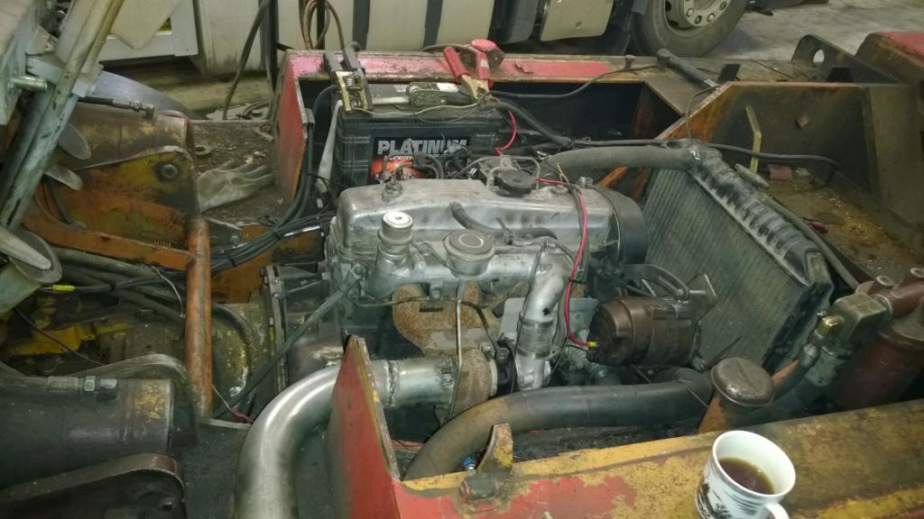 Liite 58136Liite 58132 Liite 58133Liite 58134 Liite 58135 Löyty tuolle vuosia ylimääräisenä hallin nurkassa lojuneelle Pajeron koneellekin hyötykäyttöä. Kyseessä Valmetin trukki vuodelta keppi ja kivi, aikasemmin siihen oli sovitettu Perkinsin kone. Perkins hajosi ja Mitsu tilalle :D Ihan hyvin kai toimii, vähän meinaa kyykähtää kun lykkää vaihteen päälle. Mutta muuten OK, kierroksia täytyy varmaan vähän rajoittaa Perkins Max 2500 vs. Mitsu Max 4500(?) :o Vauhtipyörääkään ei ole tasapainotettu porailujen ja sorvailujen jäljiltä... Liite 58137 |
