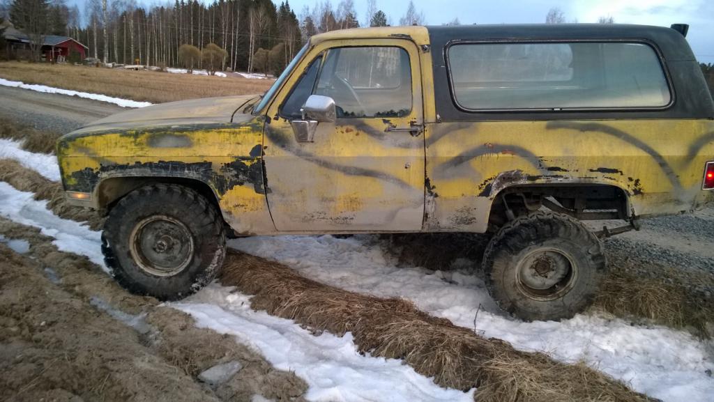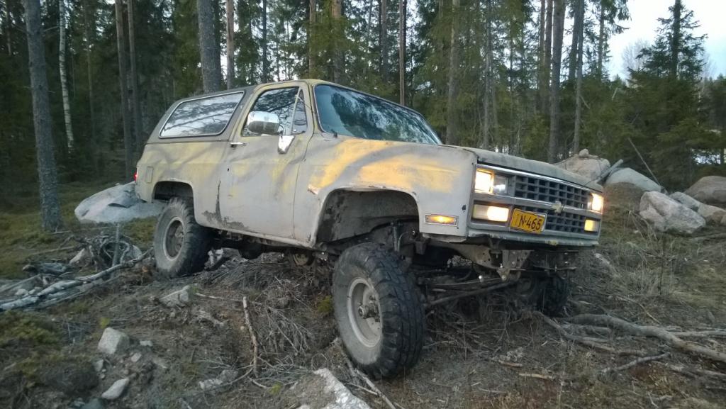 Velipoijalla on tuollanen -88 Blazeri maannut hallin nurkalla 3-4 vuotta talviunilla, sitä ennen toimi hällä käyttöautona n. 6-7 vuotta. Jäi silloin aikanaan katsastamatta kaikennäköisten vaivojen takia, erinäisten vaihtokauppojen jälkeen Laazeri vaihto omistajaa mutta ei pihapiiriä. Loppukesästä sitä on tullu pikku hiljaa heräteltyä henkiin, vesipumppu, takakartaanin ristikko tuli vaihdettua ja raidetanko oikastua. Näillä eväin sai malmikasan liikkumaan omin voimin (voima on http://forums.offipalsta.com/album.p...ctureid=168213suhteellinen käsite 6.2d :D). Tekniikka toimii kaikin puolin, loota jonkin aikaa ennen pitkää parkkia vahvistusrempattu TH700 kone siis 6.2d. Akseleista tuli huomattua että tuoreemmat 10 pulttiset 30 boorisilla vetareilla. Renkaat on kestävät ja kamalat lapikkaat. Koppa ei niin kauhean mätä, joskus 2007 on hieman kiireellä ja nuoruuden innolla paikkailtu ja jousitusta korotettu ja jne jne... Nyt tarkoitus siis saattaa takaisin henkiin ja vähän parannella (tai ainakin muutella) jostain suunnalta. |
