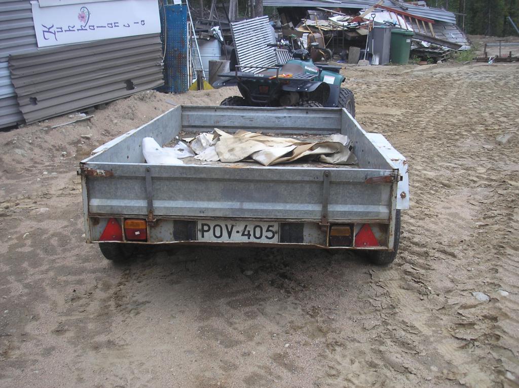vm -85 Muuli telikärry kipillä. Ei enään hirmu siisti, mutta toimiva pikkukärry moneen hommaan. lavan mitat n. 140x250cm