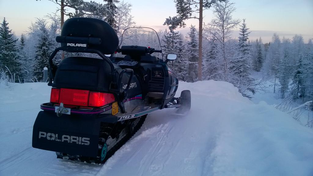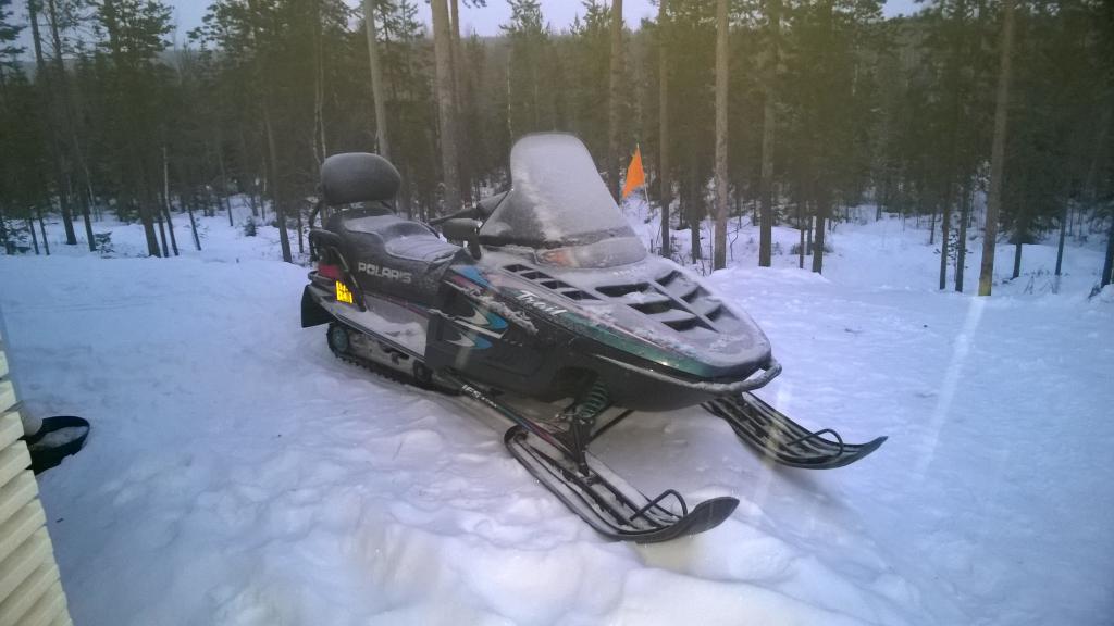 Tästä vaivattomasti lunta pöllyttämään ja ahvenia narraamaan. Ei tarvitse kuin vääntää avaimesta ja lähteä ajamaan, bensaakin on vielä puolisen tankkia, muttei välttämättä kauaa :)