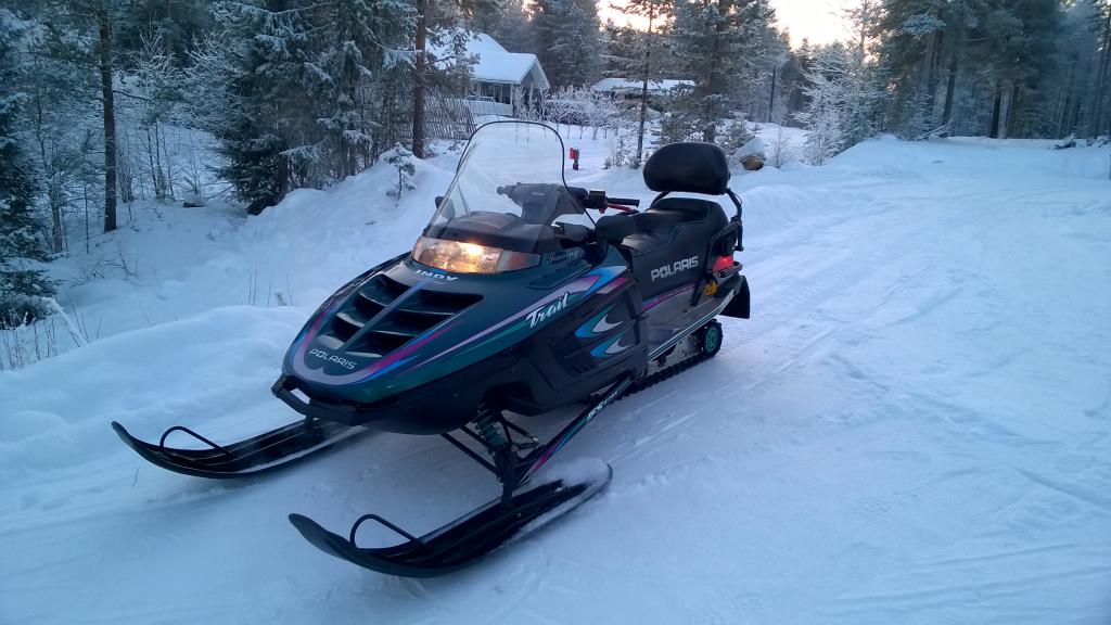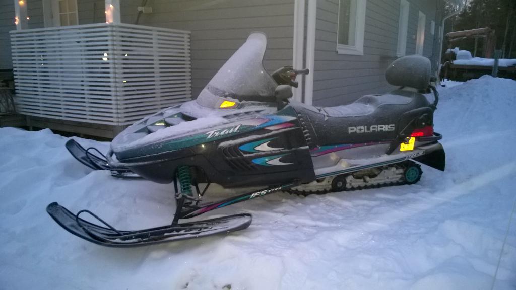 -98 Polaris trail Touring 550. Pakki, kahvan ja kaasun lämmittimet, sähköstartti, koukku, leveät suksimuovit (vuotsolaiset). Toimiva ja penkin reikää lukuunottamatta siisti peli. Mittarissa n. 10000. Hyvä tela. Penkin alla pieni tavaratila.