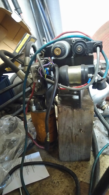 Elikkä myynnissä olisi tollainen sähkötoiminen hydrauliyksikkö Tod.näk. 12V sähköille. kahdella työsylinterillä, ei ole ollut kauaa itsellä kiinni tuo laitos, ATF-öljyä käyttää, säiliö tulee mukaan + kaikki letkut ja runkoon kiinnike joka pienellä modifioimisella voidaan laittaa autoon kun autoon, nyt se käy rangen rungolla omaaviin autoihin suoraan, nämäkin tulee mukaan, auraa ei ole ennee, mut sellaisenhan jokainen helposti tekeepi.