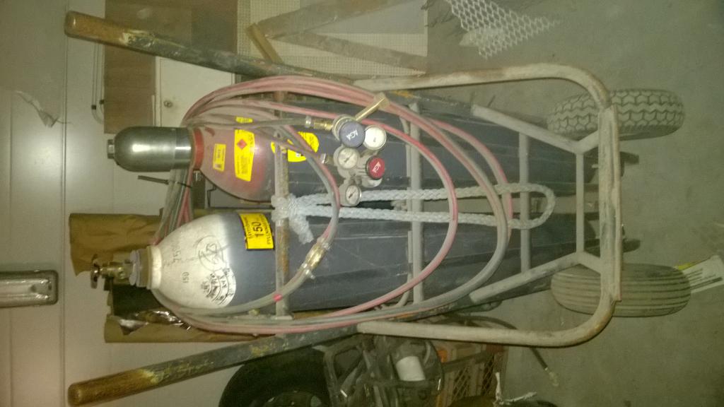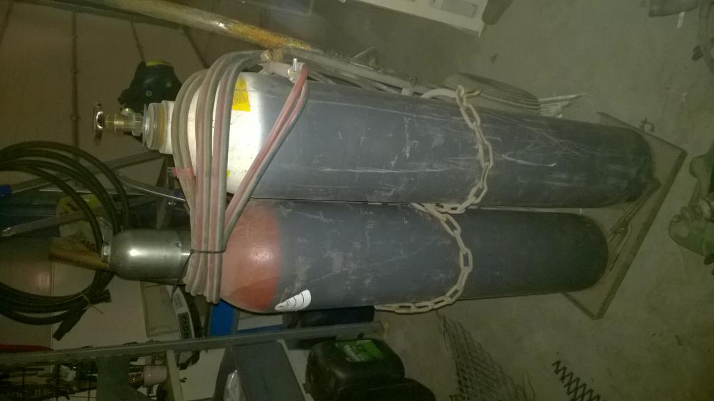 Aikalailla täydellinen sarja. Pullot, letkut, mittarit ym. Pulloissa on vielä vähän tavaraa. Ei varmaan paljoa, sihahtaa kuitenkin kun avaa venttiilin. HP 225€