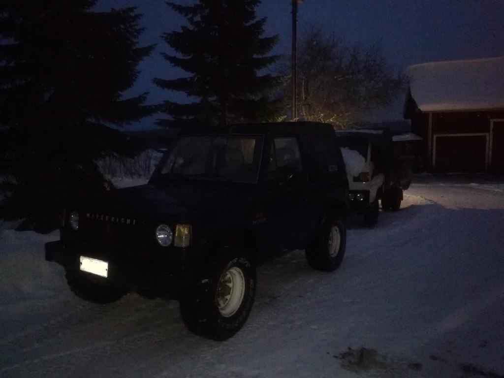 https://forums.offipalsta.com/pictur...ctureid=218583 Mutta mutta, taitaa olla aika korjata kurssia projektiautojen suhteen ja kääntää katseeni takaisin nelivetoautoihin ja poistaa Canter parrasvaloista. Pihanperällä majailee kuusen alla eräs yksilö, avoauto. Ei ei ei, älkää lähtekö vielä, antakaa kun Jonskisetä selittää ensin... https://forums.offipalsta.com/pictur...ctureid=218584 Mitsubishi Pajero 2,6 l lyhyt malli, pressu/muovi/avokatolla. Todettua vikaa ainaskin, että -polttonestesäiliö vuotaa -lämpömittari ei toimi -jarrut jumittaa Siinä mielessä harvinainen yksilö, että tässä ei ole ruosetta juuri laink. .. ... Höpö höpö, Kori melko mätä (takapuskurista ei juuri mitään jäljellä), jousen kiinnikkeet mädät, runko mätä, bensiinitankki mätä, kolaroitu = vasemmassa lokarissa kolhu mätä. Sentää muovikatto ei oo mätä:D. Suunnitelmissa voisi olla ruosteen korjausta, uusi polttonestesäiliö, korin korotusta (ehkä, jos taidot riittää) ja tärkein, mahdollinen moottorin vaihto bensiinistä diiseliin, ei oikeen miellytä 1-2 km testiajo ja litra menovettä, vai voiko tossa mahdollisesti olla joku vika? Kellään kokemuksia Mitsun 2,555 litrasesta 4g54 bensiinimootorista (että kui perso poltoaineelle?) Jatkuu varmaa sitte ku saa sormet sulaksi ja tunnon takasi Canterin jäljiltä. Muistu justiisa mielee et ei me Canterista mihikää päästä, pitäähä ne korjaukset maalata, mutta se tapahtuu kun on maalinkuivumisen kannalta suotuisammat olosuhteet, tai jos pääse kaverin luo lämpimään talliin. Eikä sitte varmaa muuta tälläkertaa, hyvvää viikoloppuu |