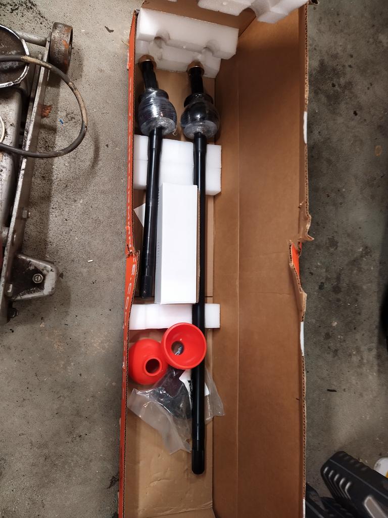 Pientä puuhastelua taas suoritettu. Eteen vaihdoin vetoakseleihin uudet ristikot kun vasemmalla oli ollut väljää jo pidemmän aikaa. Purkaessa tulikin sitten pieni yllätys kun oikealta oli jo yksi kuppi tippunut. Onneksi ei ollut mennyt mitään muuta rikki. Täytyy kyllä jossain vaiheessa hommata jotain vahvempaa osaa, mutta mennään nyt noilla vakioilla toistaiseksi.