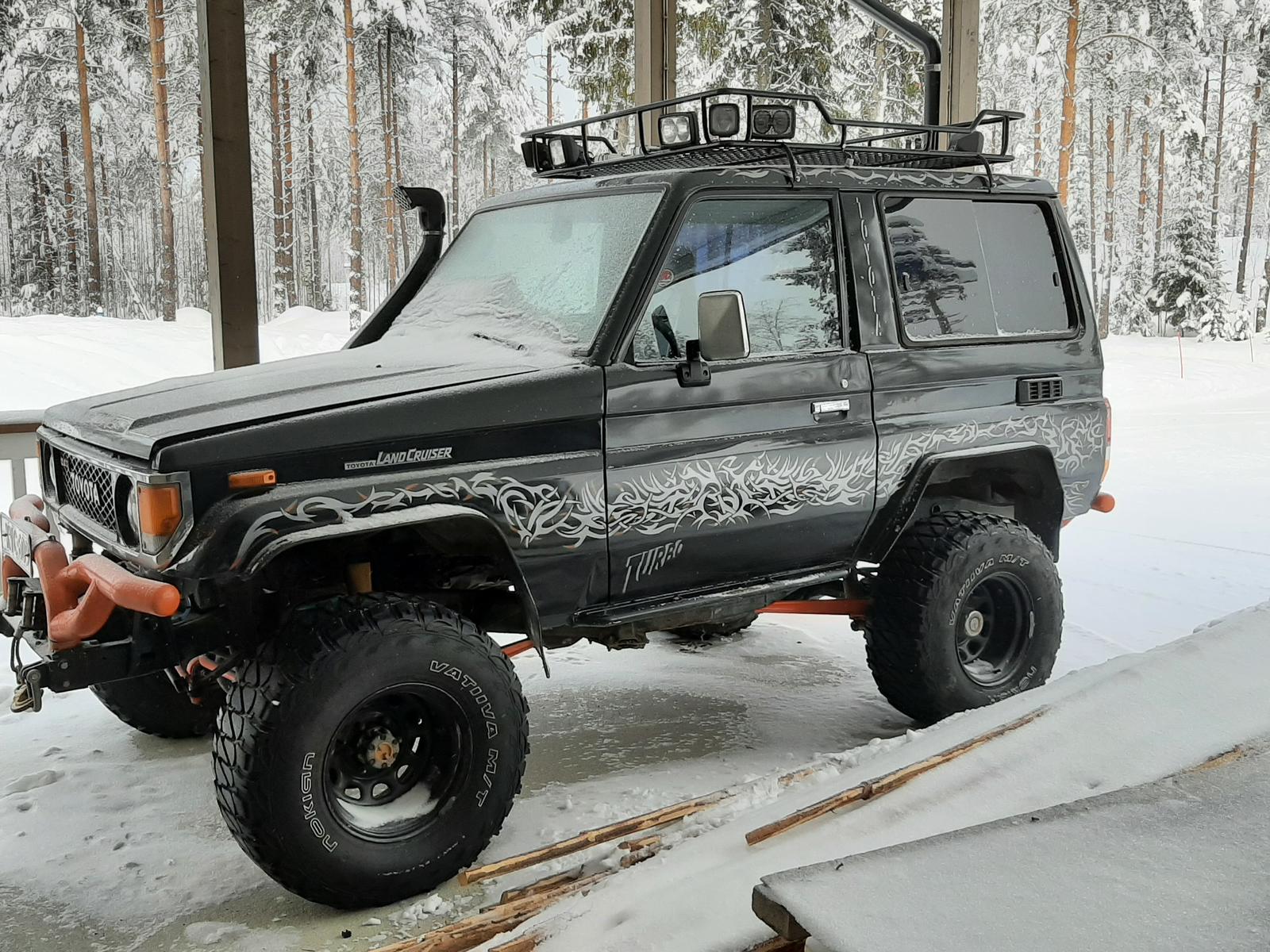 Löytyy arbit molemmista peristä, mekaanin vinssi keulilla, 33" ja 4" dobinson jouset.. Käy kukkuu ja leimattukin kesällä. On vähän joutavana katotsessa niin jos joku hyvän hinnan maksaa niin voipi tulla renkaita potkimaan ja ihmettelemään lähemmin. Huoltoautoks rekisteröity. Kaikki muutokset konetta myöten otteessa