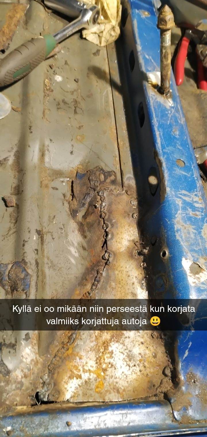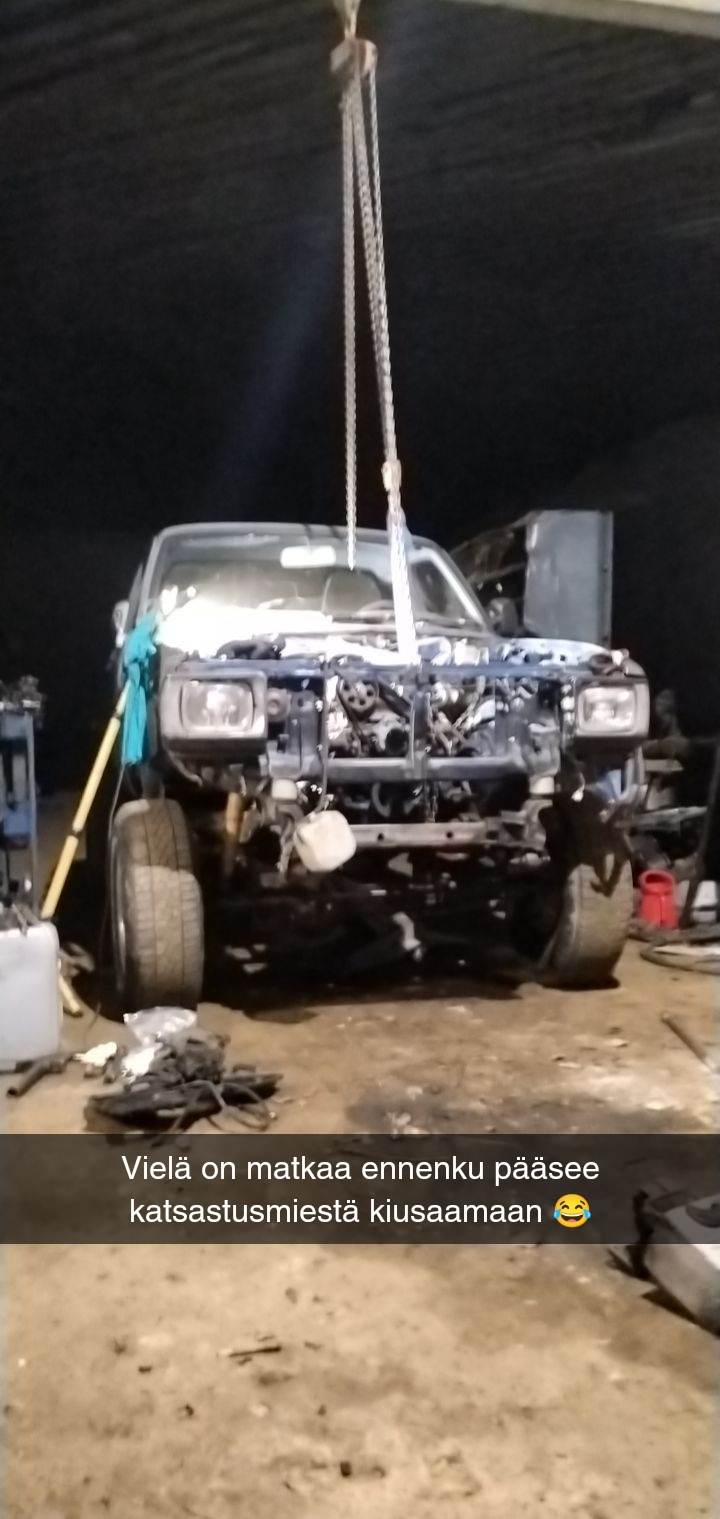 Kyseessä siis 3 kpl Ln46 hiluxeja Liite 98580 Liite 98586 Sinisen kanssa tarina alkaa joskus 2015 aikaan kun ajoin vielä onnellisesti pajerolla :D Näin tuon jossakin mökillä ryyppyreissun yhteydessä ja ihastuin välittömästi että samanlainen on joskus saatava, nooh sattumusten kautta pari vuotta myöhemmin nimiin siirtyikin juuri kyseinen auto. Leima sillä tuli ajettua loppuun ja leimaremotti aloitettua vaan se on nyt kesken ollut sen pari vuotta :o Suunnitelmat tälle asentaa uusimman hiluxin mukana tullut turbokone ja ohjaustehostin jne mukavuutta tuovia varusteita, mutta muuten pitää suht orkkis kuosissa ja käyttöauto statuksella Liite 98581 Tämä lieskakeula tuli haettua varaosiksi kans joskus 2018 kesällä, moottori ja vaihdelaatikkovikaisena. Oli viime kesään asti vailla huomiota kunnes ihme innostuspuuskan seurauksena nakkasin ehjän laatikon ja boystoys nimimerkiltä haetun turbotetun L koneen paikoilleen ja eikun leikkimään. 2 vuotta suunnittelua ja yks päivä duunia niin pääs koeajolle. :D Liite 98583 Liite 98584 Liite 98585 Tuossa sitten uusin hankinta vuodenvaihteelta, niin tuore ostos ettei ole vielä pihaan kerennyt hakea :confused: Liite 98582 Lieskakeulasta ja tästä uusimmasta olis nyt haaveissa ja unelmissa ajatuksena alkaa rakentamaan jonkunlaista offikulkinetta, suunnitelmia on jo paljon luonnollisestikin mutta saa nähdä toteutuksen kanssa :rolleyes: Alkaen nyt siitä, että kunhan saa tuon toisenkin kiikutettua tontille niin katsotaan kumman rungolle sitä kannattaa alkaa tekemään. Jos on jotakin vinkkejä näiden rakentamisen kanssa niin enemmän kuin mielellään otan vastaan ettei tarvii kiivetä perse edellä puuhun jo huonoksi todettujen ideoiden kanssa. Eka topic täällä niin jospa on edes suunnilleen luettavan oloista rääpimistä. |