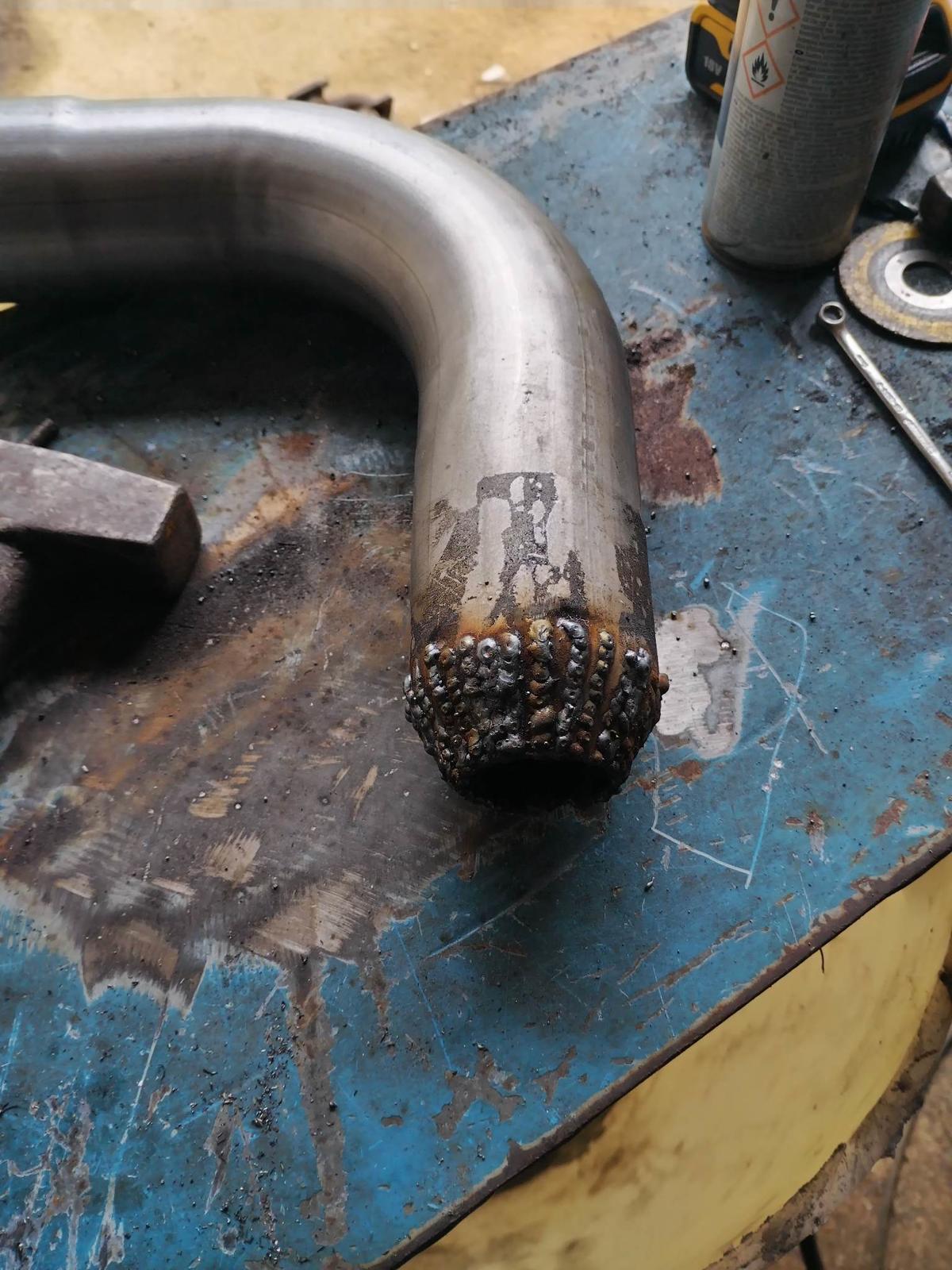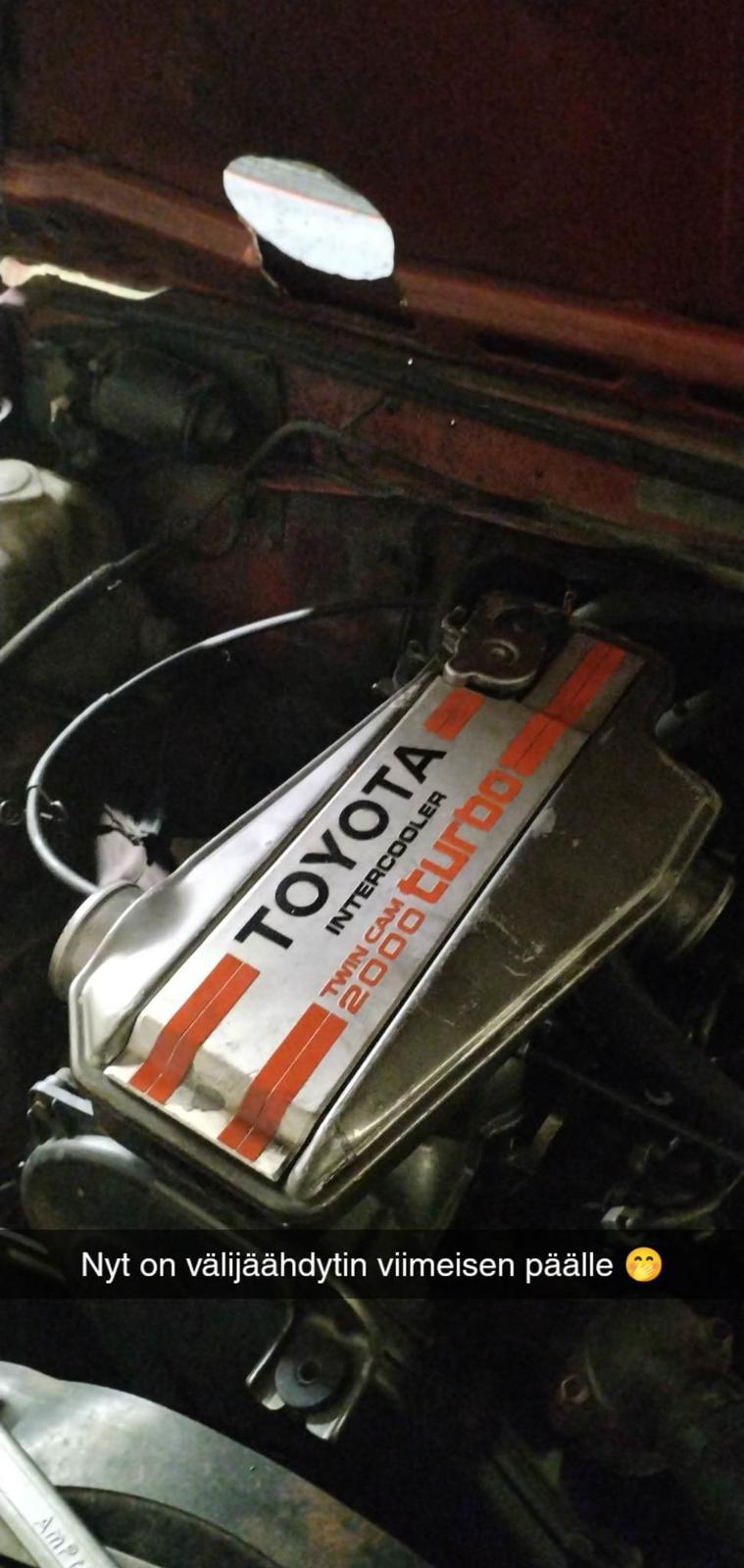 Perjantai, pakoputkivirityspäivä :o Tänään tuli tehtyä downpipe valmiiksi ja asemoitua jäähdytin paikoilleen. Downpipe on 3" ja loppupäähän tuli 2,5" v-panta josta loppu jatkuu sitten 2,5" putkella. Jäähdyttimelle vielä kiinnikerautojen viimeistely ja nesteputket. Jää tuollalailla vähän ylös, voi joutua tekemään konepeltiin lisää tilaa, mutta onnistuupahan öljynlisäys ilman jäähdyttimen irroittamista.