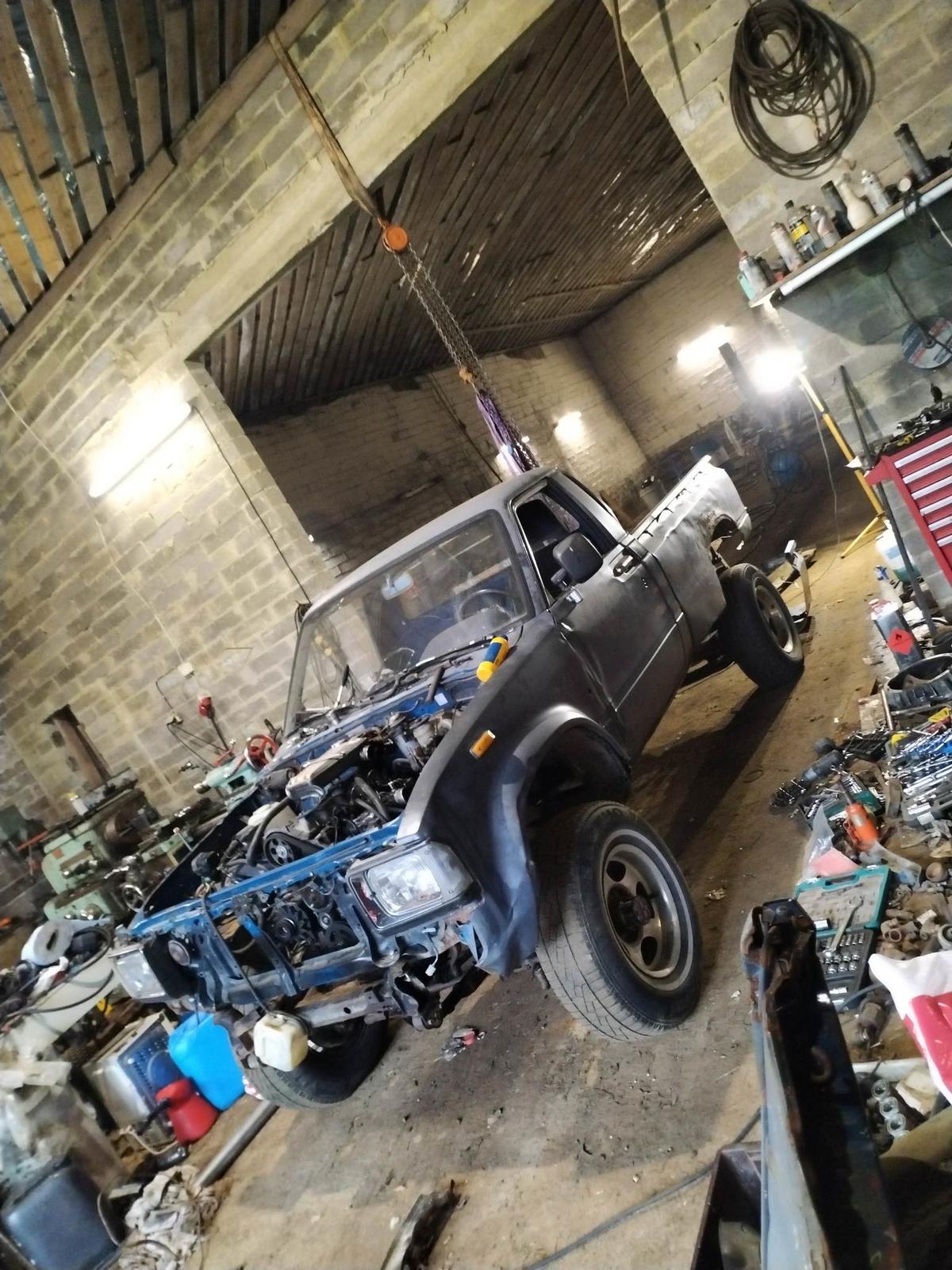 Liite 104794 Siitä sitten autoa talliin.. Liite 104799 Liite 104800 Hytti olisi hitsattuna kuntoon, lava vielä tekemättä :( Liite 104801 Liite 104802 Liite 104803 2LT Moottori löysi paikkansa pellin alta. Joku väitti, että pajerossa olisi millin isompi nestepää, joten pitihän sekin siihen sovitella. Liite 104804 Liite 104805 Liite 104806 Sitten työn alla olisi Celicasta peräisin olevan vesivälijäähdyttimen ja Ponssesta lainatun turbon sovittelu. Juuri eilen sain pakosarjan tehtyä. Liite 104807 Liite 104808 Liite 104809 Liite 104810 Siinäpä se. Vieläkään en tiedä mitä tästä tulee, mutta rakennellaan kun on aikaa ja rahaa. :D Tällähetkellä hankittuna asennusta odottamassa olisi mm; Rangen kolmilinkki, hdj80 nelilinkki, gen2 pajeron paineilmalukollinen taka-akseli, kun25? hiluxista peräisin oleva sähkölukko joka olisi tarkoitus koittaa sovittaa eteen, ohjaustehostinkamppeet highsteer varsia vailla jne jne, joten kyllä tästä tekemistä vielä löytää. :D Kuvia tulee varmaan vielä ja vaikka missä järjestyksessä kunhan niitä jostakin löytää, mutta siinäpä tärkeimmät. Liite 104811 |