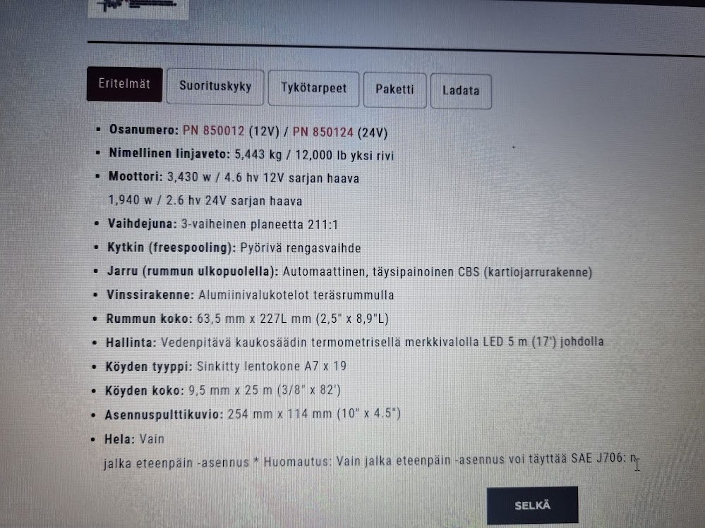 Liite 102309 Liite 102310DV 12 Light 5443 kg comeupin oma kaukosäädin ja lanka ohjain valurautanen kita hyvä dyneema köysi 400e o4oo585584 veli-matti |