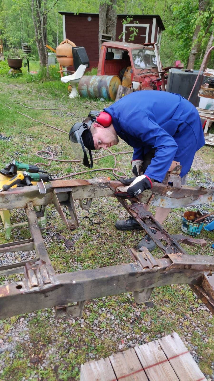 10v hautomisen jälkeen projekti nytkähti liikkeelle 410:n rungon entrauksella. Viime kesänä siihen uhrattiin muutama tunti ja tänä kesänä vähän lisää. Haperoa on sano. No kun tarpeeksi tekee uusia paloja ja osia niin eiköhän siitä vielä kantavan saa.