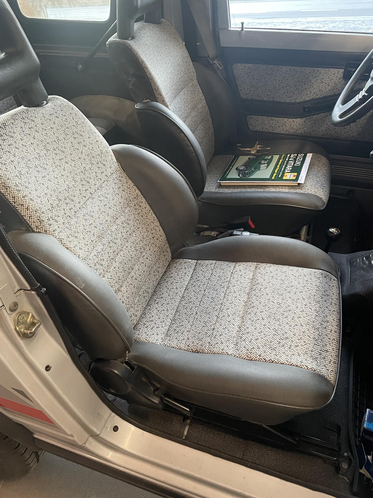 Ostetaan SJ413 kuljettajan ja apparin penkinpäälliset tai penkit. Haussa hyvät/ehjät, jotka samaa sävyä kuin nykyiset. Ohessa kuva.