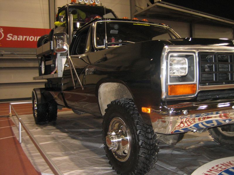 http://forums.offipalsta.com/picture...ictureid=10345 Kuvasin tuon Suzukin ja Dodgen pirkkahallin näyttelyssä viime vuonna. Suzuki on hienosti rakennettu. :) Eikä Dodgekaan paskempi ole. Entinen SA-INT auto vaihtolavalaitteilla, perät dana 60 ja 70, nykyään turbo diesel koneella, ja kuusi maastorengasta. :D |