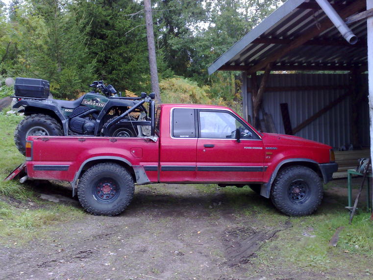 Karja aura,lavakaari,lisävalot,työvalot,vetokoukku,lavap ressu.Vasta katsastettu.Ajokm.108500tkm.Myydään isoilla 33" maastorenkailla hintaan 4000e ,mutta mahdollisuus ostaa pienemmillä renkailla 3000e hintaan.Kyselyt nroon.050-4544876 tai 050-3522327 Auto Janakkalassa