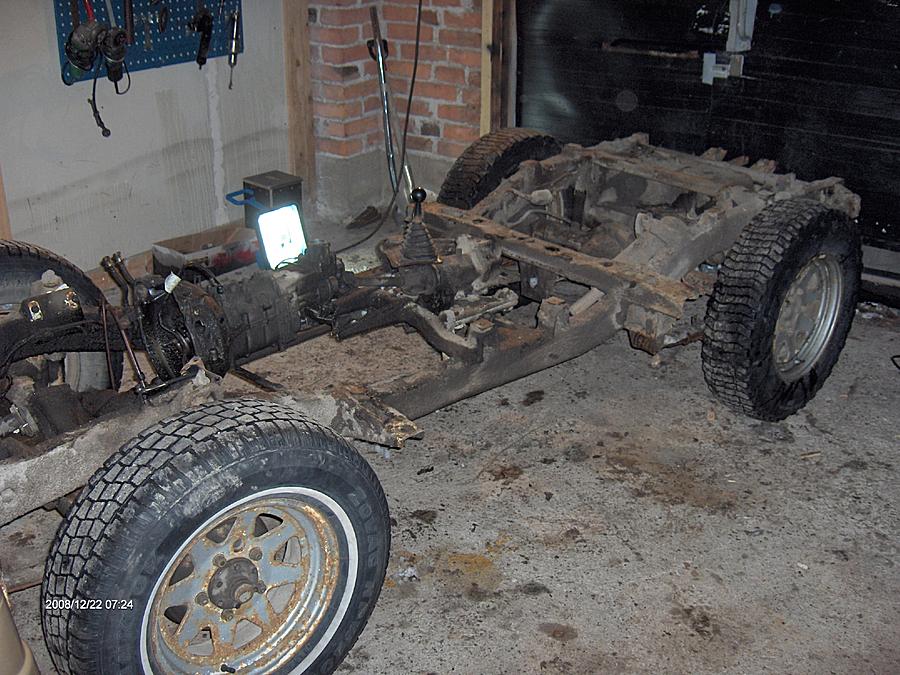Tuli ostettua tällänen ku teki mieli. Ajelin sillä neljä päivää ja sit pistin se palasiks. Tarkoituksena tehä koko autoon täydellinen remontti. lisäksi asentaa vinssi, isommat renkaat, laittaa soa sekä muutä tilpehööveriä. Kuinka isot renkaat muuten saa noihin suitsan vakio vanteisiin?