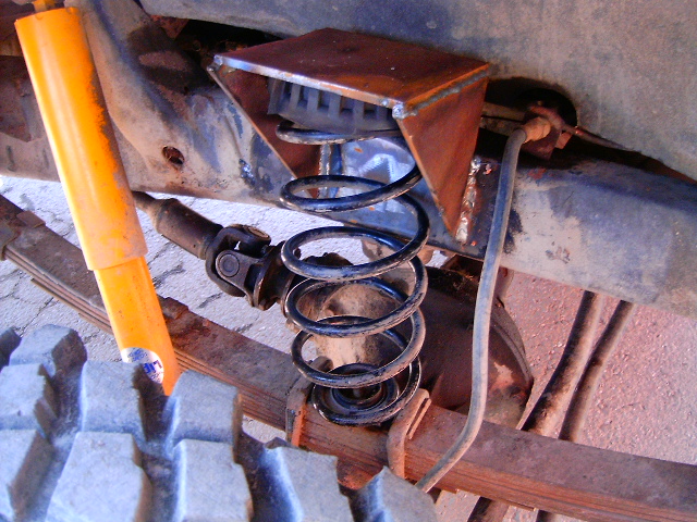 Eteen ei alkuperäisillä ohjauskilkkeillä välttämättä kannata lisäjoustoa paljoa viritellä, pitkittäisen ohjausvarren pyörännavan puoleisen pallonivelen liikerata ei muistaakseni riitä juurikaan pidempään ulosjoustoon.. Taakse vois olla helpoin sovittaa karpiolettimallin jousipakat ja riiput, tractionbaarilla terästettynä. Täältäkin ääni putki-iskareille.