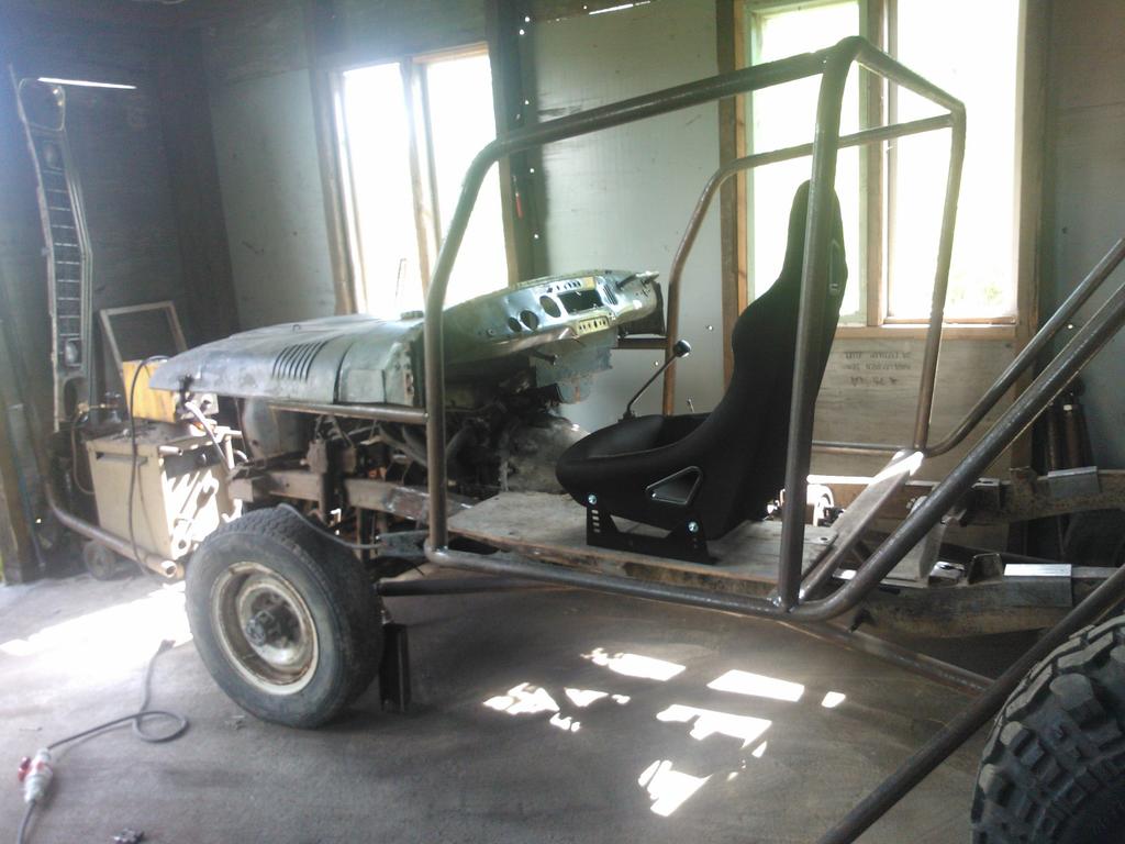 Perusta lasketaan tuolle RHS:lle mihin tulee pääkaari kiinni: http://forums.offipalsta.com/picture...ctureid=110299 Sitten tuli mutkiteltua "helmaputki": http://forums.offipalsta.com/picture...ctureid=110300 Tuossa sitten mallaillaan todennäköisesti ainoita alkuperäisiä peltiosia mitä jää jäljelle: http://forums.offipalsta.com/picture...ctureid=110301 Hetken oli kamera piilossa, niin jo oli tilanne muuttunut tuollaiseksi: http://forums.offipalsta.com/picture...ctureid=110304 Takapäästä tuli tuollainen: http://forums.offipalsta.com/picture...ctureid=110305 Kuten kuvasta näkyy, oikeastaan mitään akseliston tuennasta ei ole vielä hitsattu kiinni. Ensin pitää hieman heilutella akselia että näkee miten se sitten elää. Sitten kun kaikki näyttää hyvältä, niin kaikki kiinni. "Takakonttiin" pitää sitten seuraavaksi rakennella tikkujen yläpään kiinnitykset, mekaaniselle vinssille peti, ym. pikku askareita. Mutta loma loppui, ja milloin seuraavaksi sitten jotain tapahtuu, jää mysteeriksi. Pitäisi jostain lähempää keksiä talli missä tuota voisi nakertaa niin voisi sitten jopa nopeamminkin valmistua. |