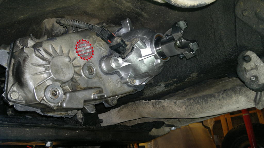 Kyseessä Cherokee XJ -92, johon asentelin korotussarjan. Aiemmin olin lukenut, että takakardaani saattaa rakenteestaan johtuen alkaa täristää korotuksen jälkeen. Tähän laitoin jakolaatikon (NP242) laskuosat, ettei sitä nyt sitten tapahtuisi.