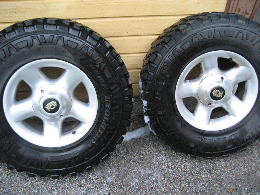 Renkaat ovat noin puoli kuntoiset.. vanteet ovat 7 tuumaa leveät ja suht siistit. pientä pinttymää on kertynyt mutta aikalailla naarmuttomat... jako 6*139,7 ET 0..