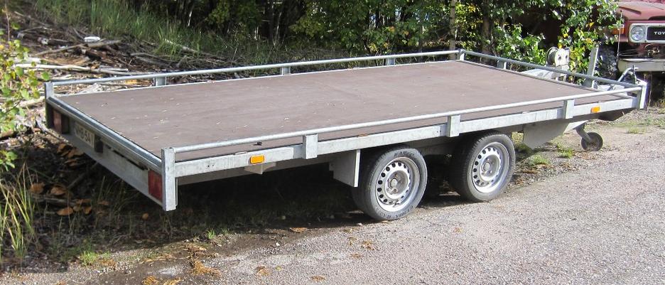 Jeeppi on kilvissä, joten ei ole enää tarvetta. Katsastettu viime jouluna. Katsastus joka toinen vuosi. Uutena ostettu ja Jeeppiä kisoihin sillä siirrelty. Renkaat ovat lavan alla, joten eivät ole levittämässä kärryä.
