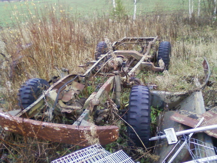 Tämmössen rungon akseleineen bongasin ihan yleiseltä paikalta,on seissy tossa jo vuosia.Vieressä olevista peltiosista päätellen lava-auto.Ainakaan jakis ei pyöriny käsin. En tunnistanu merkkiä mutta veikkaisin (renkaista ja polkimista) itänaapurin tuotteiksi.Kysymys kuuluukin että mikä on merkki&malli?