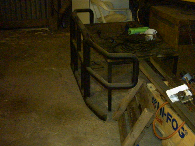 Hiluksissa ollu karjarauta tarpeettomana nurkissa. Korkeus n.66cm ja leveys n.170cm. Tehty kahden vahvuisesta putkesta. Toinen 60mm ja toinen 40mm.Liite 16148