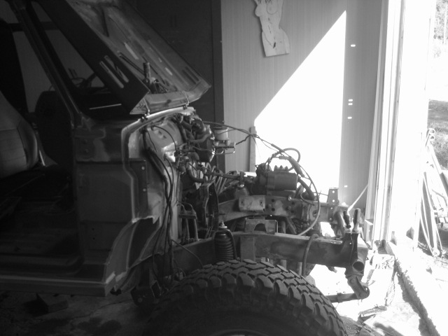 avustuksella. Tarkoituksena rakennella pikkuhiljaa vakiota(toivottavasti) paremmin etenevä maastokulkine kun edellinen kierrejousellinen 410 tuli myytyä. Pakkaset nyt vaan pahasti hidastavat aloitusta kun kipinähommat joutuu pääasiassa tekemään ulkotöinä. Suunnitellut muutostyöt -Akselit toyota ln65:n eteen ja lj:n taakse 4.56 välityksillä+lukot -Jakikseen tg 6.5 välit -Ruisku kaasarin tilalle (löytyi sopivasti Laalaalta) -Laikka-avo ja siihen Tarelta löytynyt targakaari + muovikatto kattoluukulla :) -Turvakaaret varmuuden välttämiseksi -Tilaa 33 renkaille Ohjaustehostus vielä arvailuttaa jotta minkä simpukan hyödyntäis.Rungon sisä vai ulkopuolelle. Sektorivarsi eteen vai taaksepäin? Myöskään kardaaniongelmaa ei ole vielä ratkaistu eikä ole hoppukaan. Projektin etenemistä jouduttaneille kiitokset kun harva näitä yksinään saa tehtyä. -LämpöjaVesijohtotyöt Yli-Karro -Hämeen Autosähkö -Huoltokorjaamo Friman -Varaosaliike Sarin -Peltityöt Heikkilä -Offroad palvelu TS Offix -Timantti Nieminen -Automaalaamo M Tervo -Mutis,suppe,sumpe,MF ja moni muu palstalainen osien toimituksesta ja neuvonannosta. |